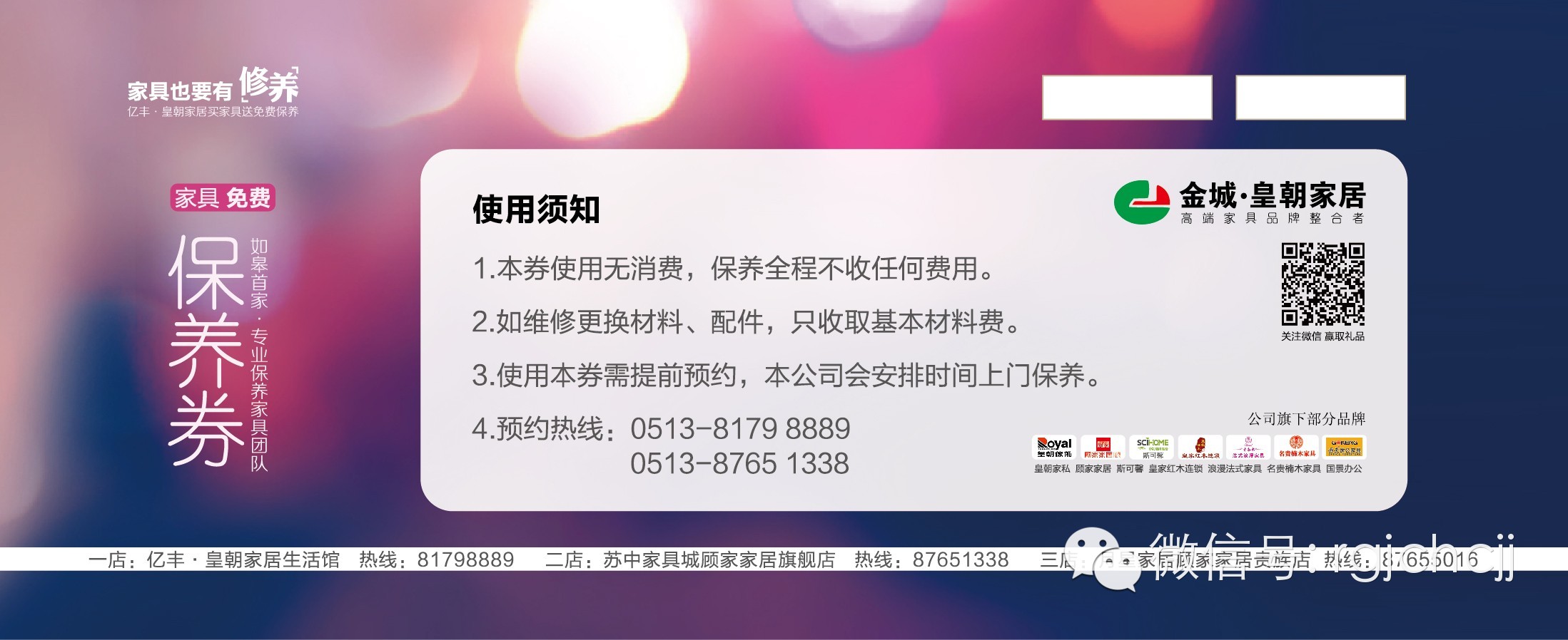 金城·皇朝家具免费保养行动又开始了 ……duang 全免费!! 不管您买的是不是我们的品牌,我们都给您免费保养。 对!您没有看错,全程不收任何费用。 就是这么任性!!您还在等什么,赶快拨打电话免费领取保养券!